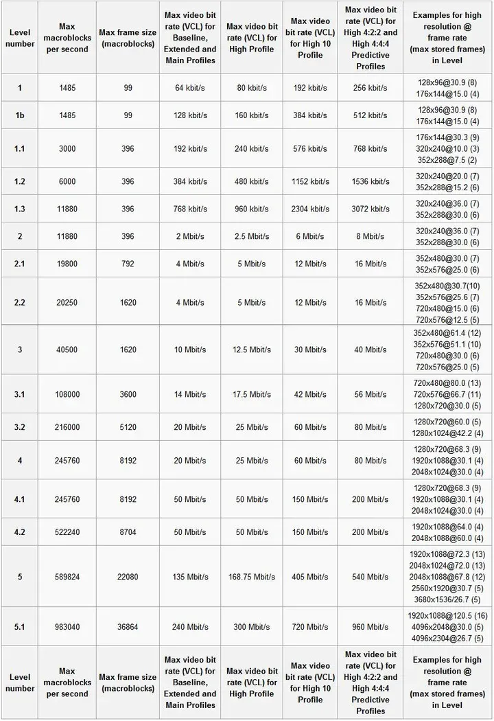 H264 Level