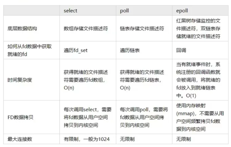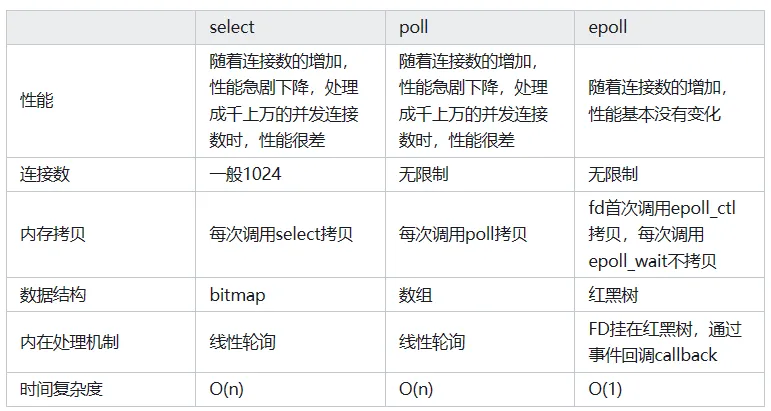 select&poll 调用时会将全部监听的 fd 从用户态空间拷贝至内核态空间并线性扫描一遍找出就绪的 fd 再返回到用户态。下次需要监听时,又需要把之前已经传递过的文件描述符再读传递进去,增加了拷贝文件的无效消耗,当文件描述很多时,性能瓶颈更加明显。