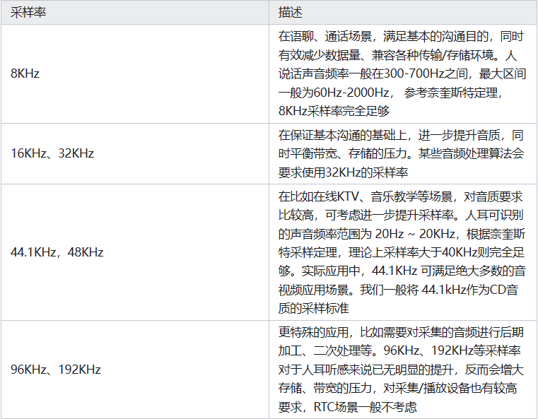 具体采样率满足场景如下: